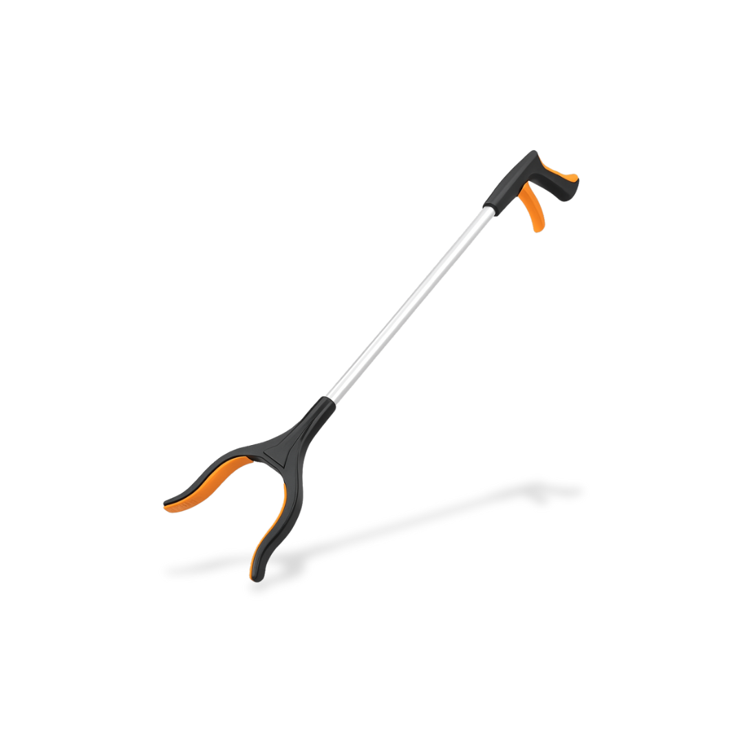 The Reacher Grabber Tool is designed to assist individuals who cannot comfortably bend, twist, or reach overhead without strain or risk of injury. This lightweight adaptive aid features a durable aluminum arm with a soft-grip trigger handle that enables users to pick up lightweight household items weighing up to 3 lb from the floor, shelves, or other hard-to-reach areas. The anti-slip rubber jaw provides a secure grip on objects ranging from coins and envelopes to trash and clothing. The easy-squeeze trigger mechanism accommodates users with weak grip strength or arthritis, while the lightweight aluminum construction reduces arm fatigue during extended use. With a 32-inch extended reach, this grabber eliminates the need to bend beyond 90 degrees, making it ideal for post-operative recovery requiring hip precaution compliance. Suitable for elderly users, individuals with limited mobility, and those recovering from surgery, this tool promotes independence in daily living activities at home or in healthcare settings.